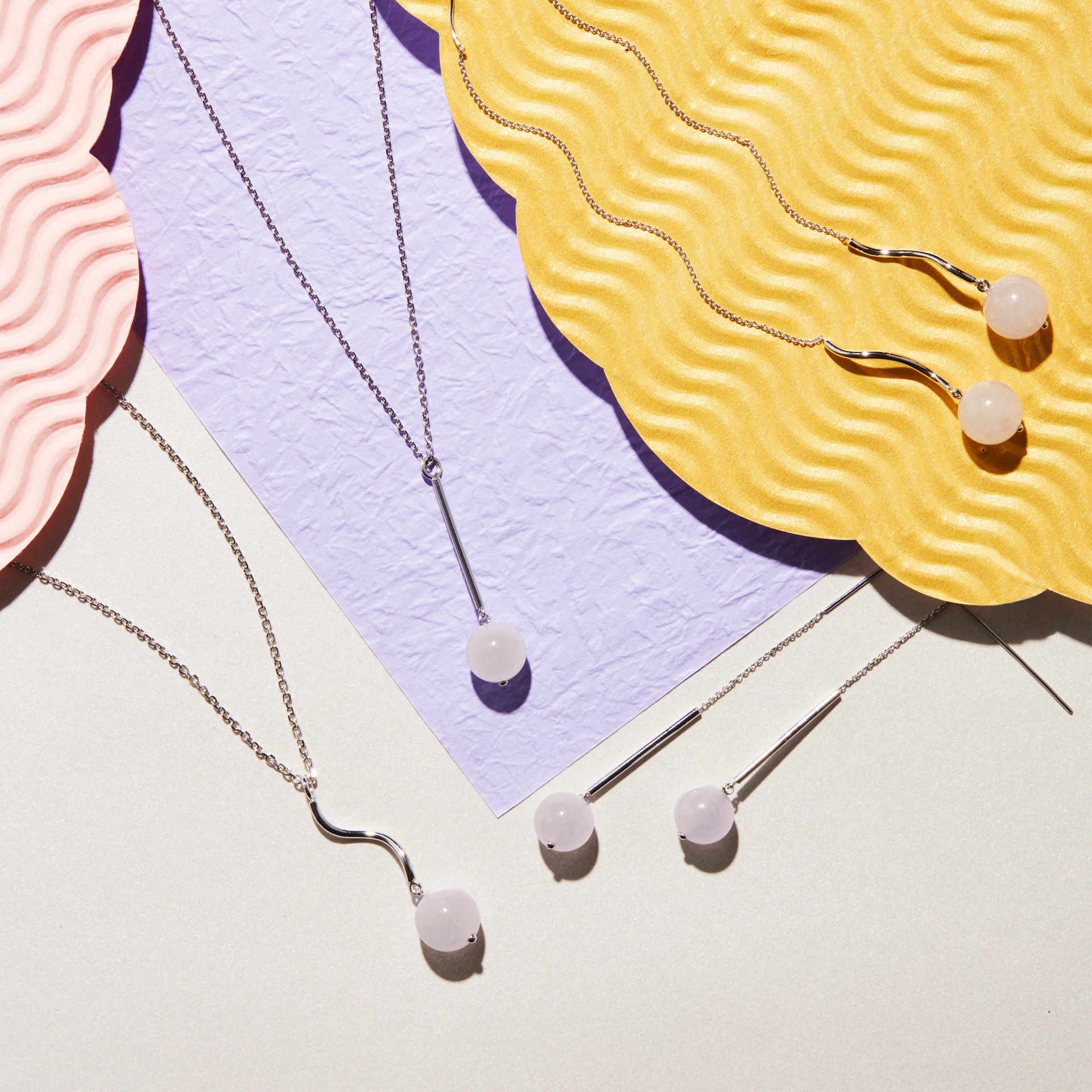 【JOY】系列,精選優質的紫羅蘭翡翠,天然玉色的恬雅清瑩,最能詮釋出女性的溫柔特質。主石造型,細細琢磨為小圓珠,散發出浪漫的美麗,亦象徵了女性內在世界的清澈、靜好。